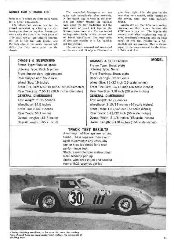 Test de la Ferrari 250 GTO 64 Monogram - Model Car and Track Septembre 1965
